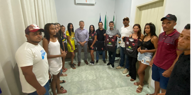 Esta semana foi a vez do time de futebol feminino Flamengo, do povoado Baixão do Riacho, ser contemplado com uniforme completo, composto de camisas, shorts e meiões. A entrega foi feita pelo prefeito Valdecir Júnior, o secretário de Finanças, Kleber Carvalho e o secretário de Esportes, Cristiano Dourado.