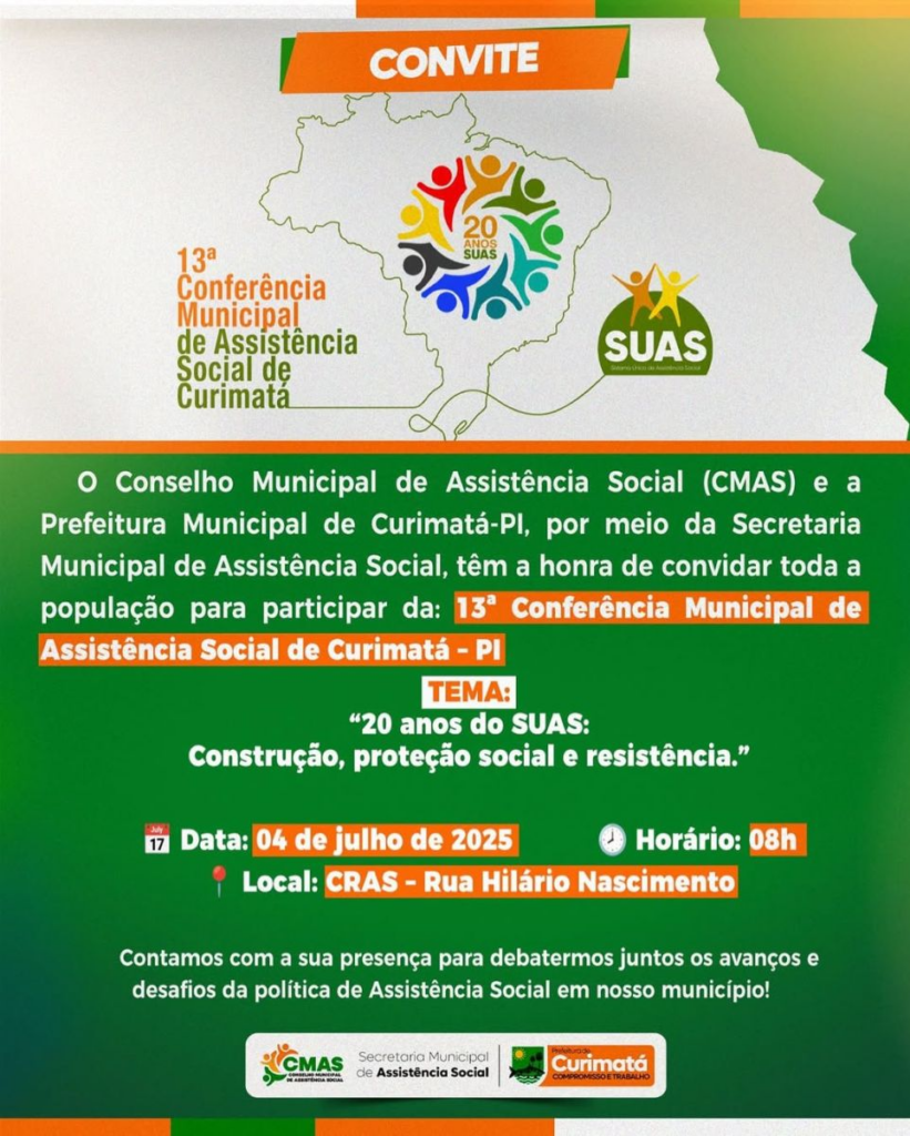 Vem aí a 13ª Conferência Municipal de Assistência Social de Curimatá – PI! 💚