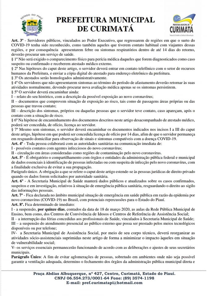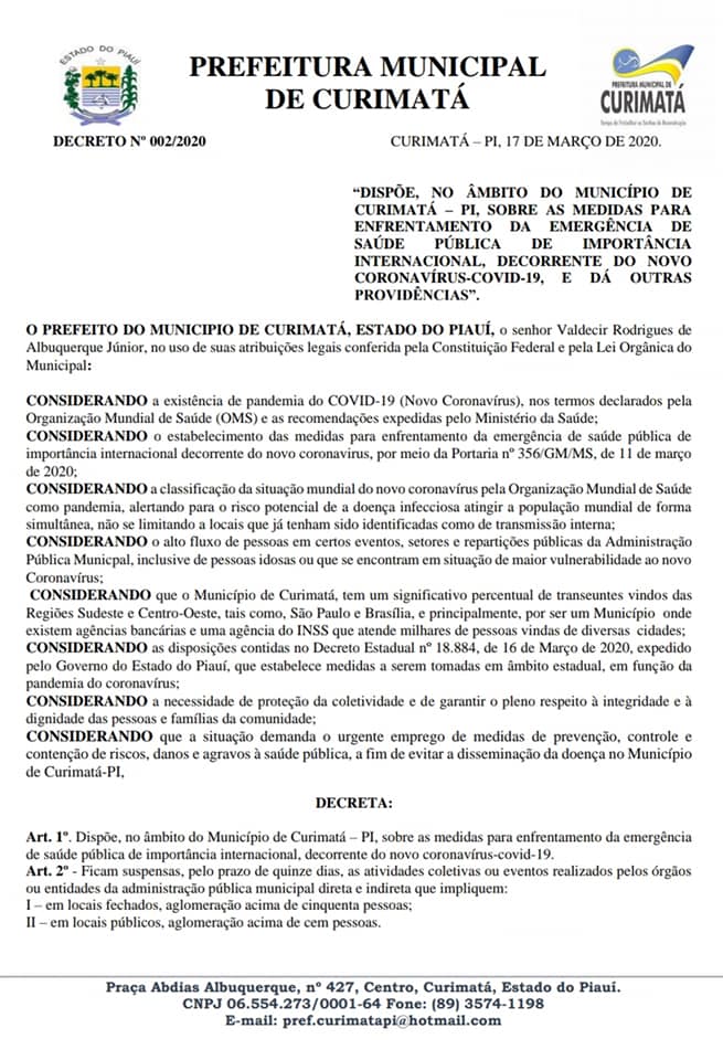 Equipes das secretarias de Administração, Assistência Social, Educação, Esportes, Infraestrutura e Saúde do Município de Curimatá se reúnem para definir ações e estratégias para o combate à transmissão do corona vírus 🦠 em Curimatá. Todos engajados nessa missão! O Prefeito Valdecir Júnior designou a instalação de um Comitê de Emergência de combate ao vírus, determinando o trabalho de todas as secretarias e pedindo a compreensão e o apoio da população.