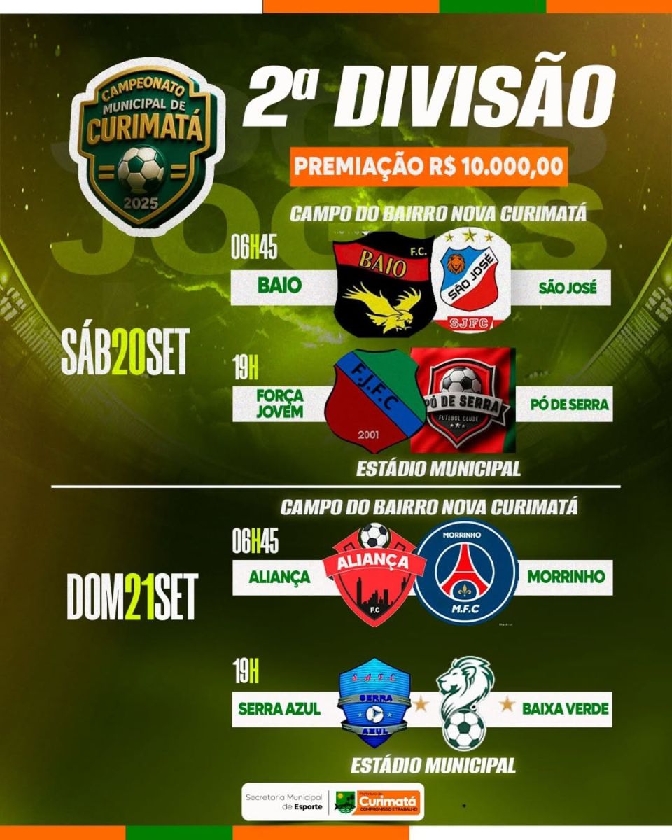 ⚽🔥 Vem aí mais uma rodada emocionante da 2ª Divisão do Campeonato Municipal de Curimatá 2025!