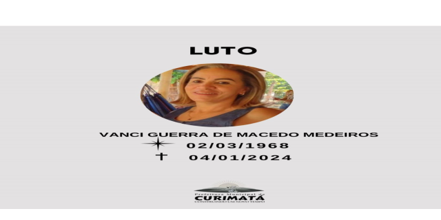 Expressamos nossas sinceras condolências aos familiares, especialmente ao esposo Ilvan Lustosa Medeiros, aos filhos Ilvan Medeiros Lustosa Júnior e Cláudio Guerra de Macedo Medeiros, aos irmãos Eli Guerra de Macedo, Tanci Guerra, Nanci Guerra, Vanderlino Guerra, Darcilene Guerra de Macedo e Graci Guerra de Macedo Fernandes, e como representante dos demais familiares, solidarizamos com o sobrinho Edionelton Guerra de Macedo, que foi servidor do município.